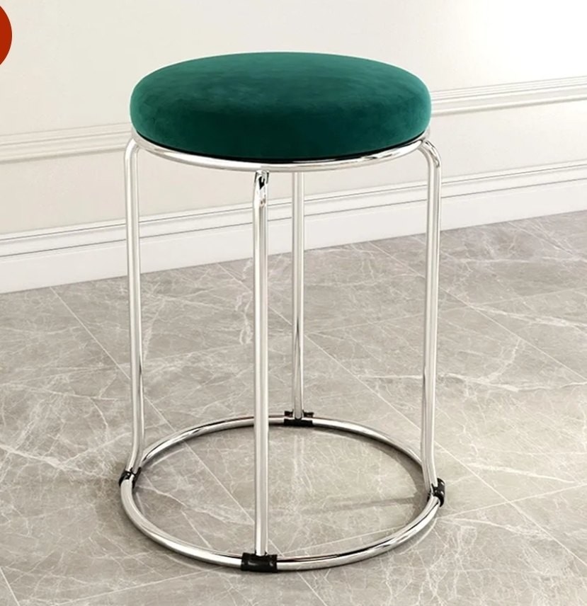change Metal chrome plated finish frame cushion velvet seat round shape seater and base designer 18 inch sitting fix stool