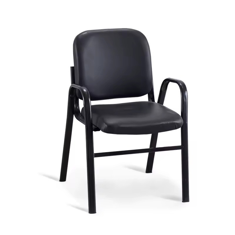 metal powder coated black color cushion PU leather seat medium back back with armrest home and office visitor chair